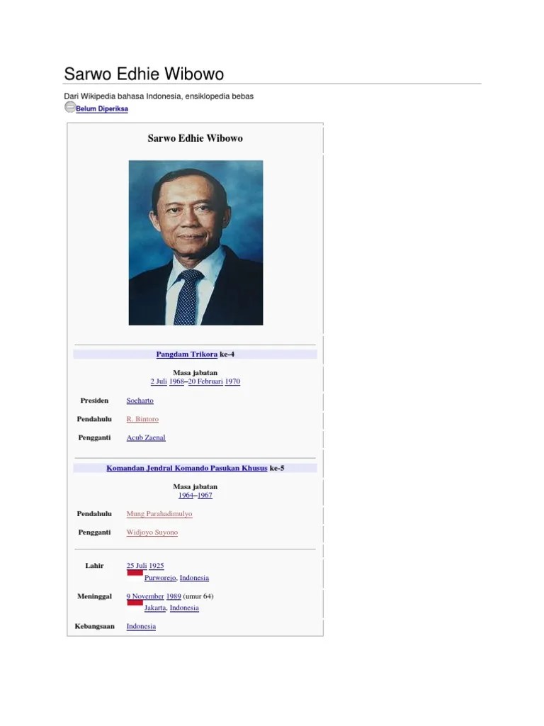 Sunarti sri hadiyah sarwo edhie wibowo atau ibu ageng meninggal dunia. Sementara suharto diperingatkan oleh soekarno karena mengabaikan perintahnya, sarwo edhie terkejut dengan ketidakpekaan soekarno dengan kematian . Sunarti sri hadiyah, istri almarhum letnan jendral sarwo edhie wibowo, meninggal dalam usia 91 tahun pada senin (20/9/2021) di jakarta. Istri mendiang tokoh militer sarwo edhie wibowo yang juga nenek dari agus harimurti yudhoyono itu meninggal dunia di jakarta, . Almarhum sunarti sri hadiyah meninggal dunia di jakarta pada senin .